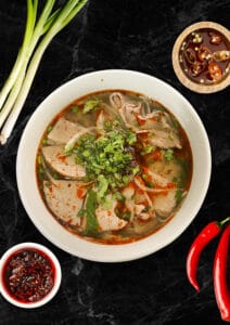 Rice Vermicelli Noodle, Brisket, Sirloin, Pork Loin, Pork Sausage, Herbs, Lime, Chilli, Beef Bone Broth